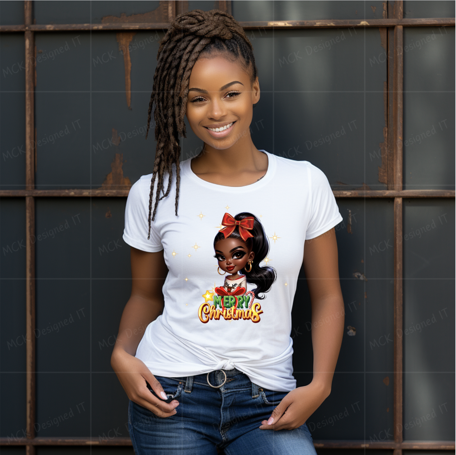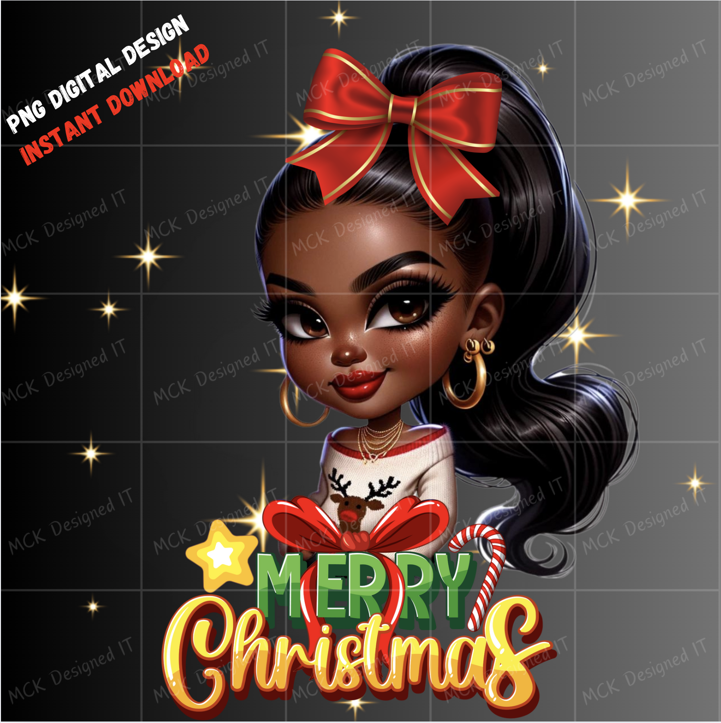 This beautiful Merry Christmas Black Girl PNG design features a stylish holiday doll with a festive bow, cozy sweater, and glowing Christmas charm. Perfect for Christmas-themed crafts, apparel, and sublimation — this high-resolution PNG adds class, confidence, and seasonal sparkle to your creative projects.