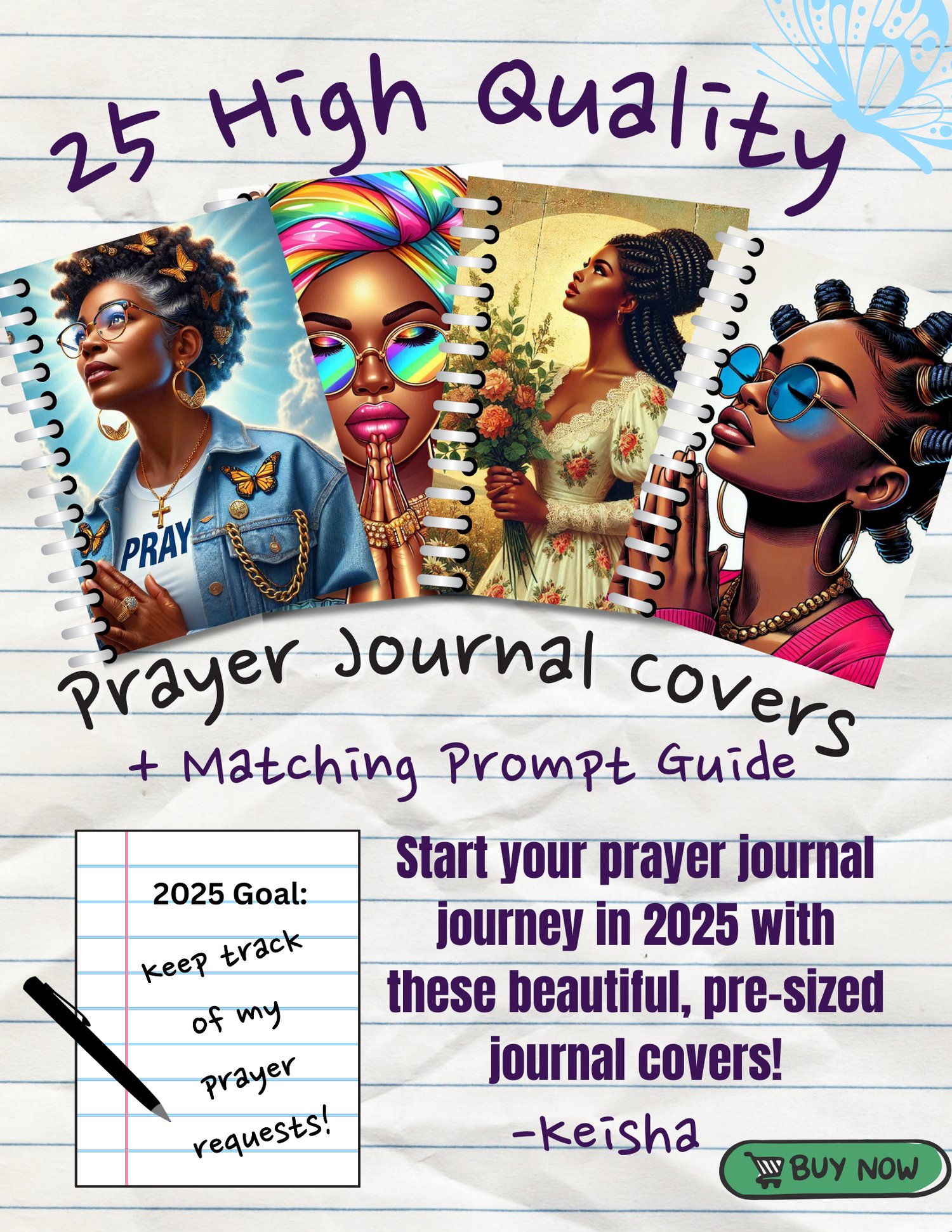 Prayer is a powerful tool that keeps us connected to The Most High. Keeping track of those prayers allows you to work towards seeing the results! With these Prayer journal covers you can do just that. Be inspired every time you reach for your journal, to pour your heart out in good faith that you will receive what you've asked for. Plus, each image is pre-sized to fit your pages. Plus, each image comes with a prompt guide for you to recreate with your own creativity. Plus, you can resell this set for your own income! With so many pluses you need to add this collection to your stash!
