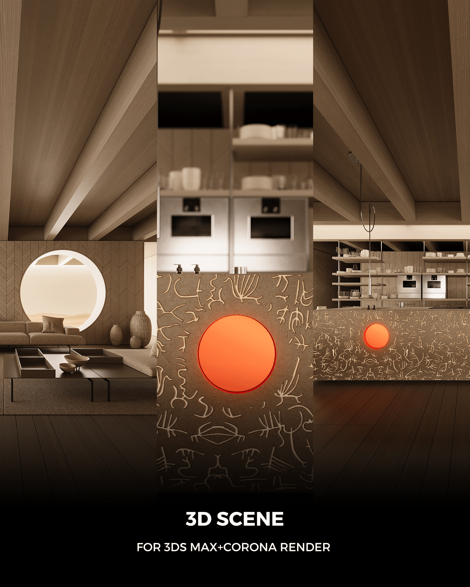 3D scene made in 3Ds Max + Corona Render, with customized lighting and materials. The scene is worked out and assembled with incredible detail, clarity and accuracy. Saved all lighting settings, textures, furniture details. This is an incredibly useful tool for designers and visualizers who want to improve their skills and level up their work in 3Ds Max 2018-2024 + Corona Render 8. Enjoy!