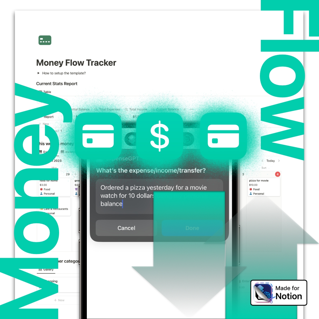 The Money Flow Tracking chatGPT shortcut with Notion is a powerful tool designed to help you effortlessly track your expenses, incomes, and transfers using natural language inputs. With the integration of Notion, a popular productivity and note-taking application, this shortcut provides a seamless experience for managing your financial records.