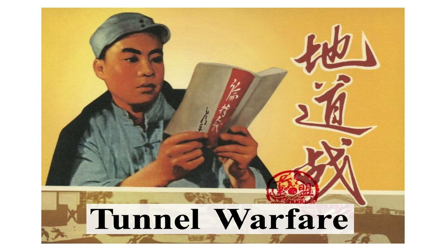 1. During the War of Resistance Against Japan, the broad masses of the people in the base areas behind enemy lines, guided by the brilliant thought of Chairman Mao's people's war, cooperated with the Eighth Route Army armed forces to widely carry out guerrilla warfare. They created various ingenious fighting methods, fully demonstrating the immense power of a people's war. Tunnel warfare is a shining example of this.