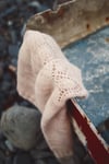- One repetition of Lace chart: 16 sts x 22 rows – 12.5 cm x 8 cm 5” x 3.25” on 5 mm needles, after blocking.