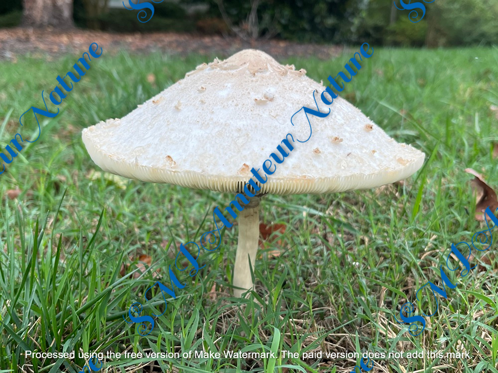 Amateur photograph of a Green-Spored Parasol (Chlorophyllum molybdites) in a yard. Image taken in Virginia, USA. Image pixels 3024x4032. Image easily resized as required for buyer needs. Purchase gives image without any watermark.
