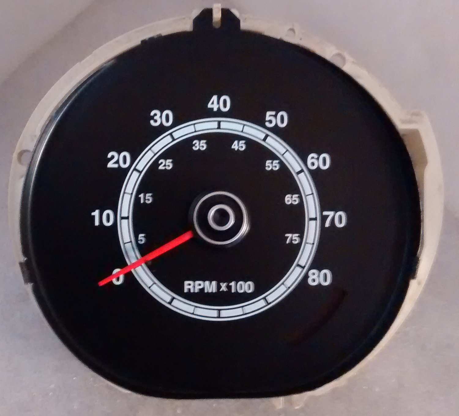 The tach is designed to match the speedometer and look like a factory tach. It has a competition orange pointer and is only available in factory black in the 8000 RPM range.
