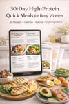 The 30-Day High-Protein Quick Meals for Busy Women guide is a beautifully designed digital PDF created for women who want simple meals, better food structure, and more protein in their routine — without spending hours in the kitchen.