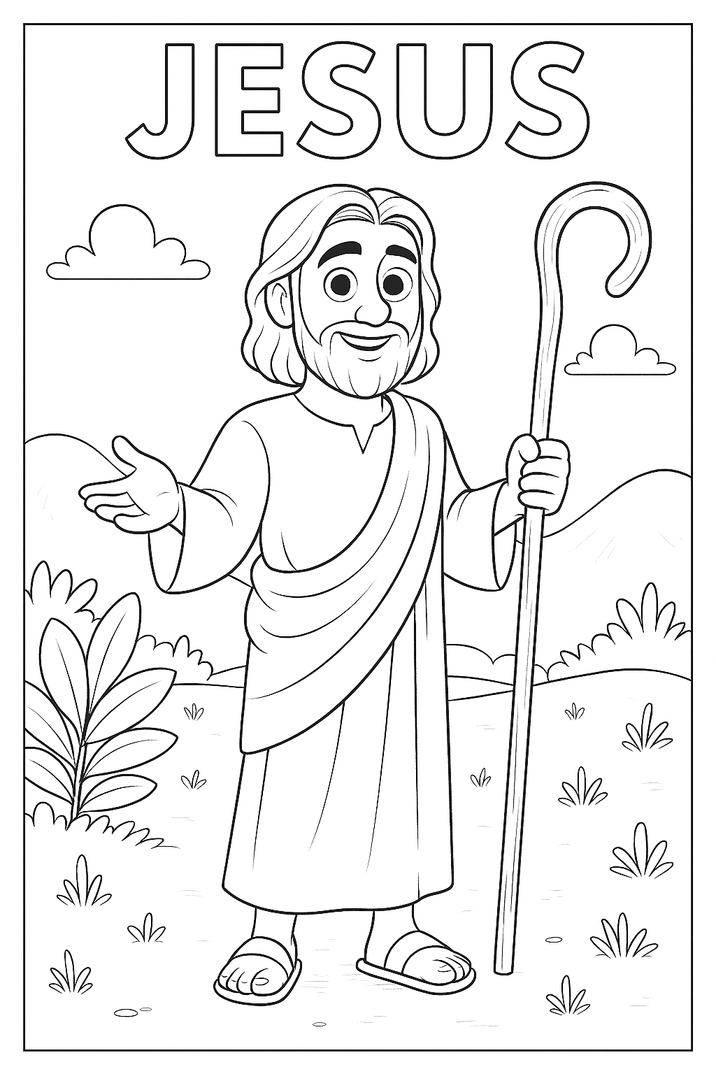 ✝️ Jesus the Shepherd – Bible Character Coloring Page for Kids