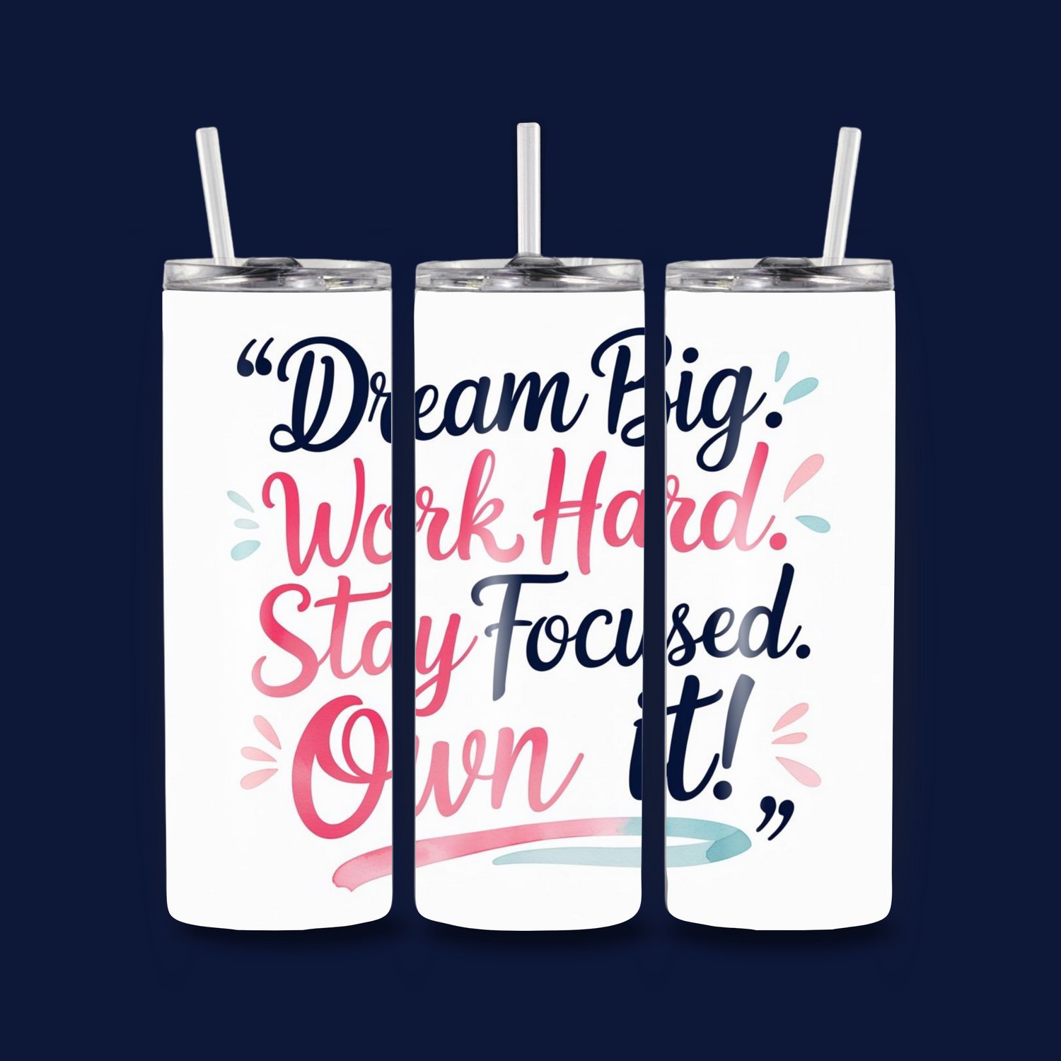 20 oz Motivational Skinny Tumbler – “Dream Big. Work Hard. Stay Focused. Own It.”