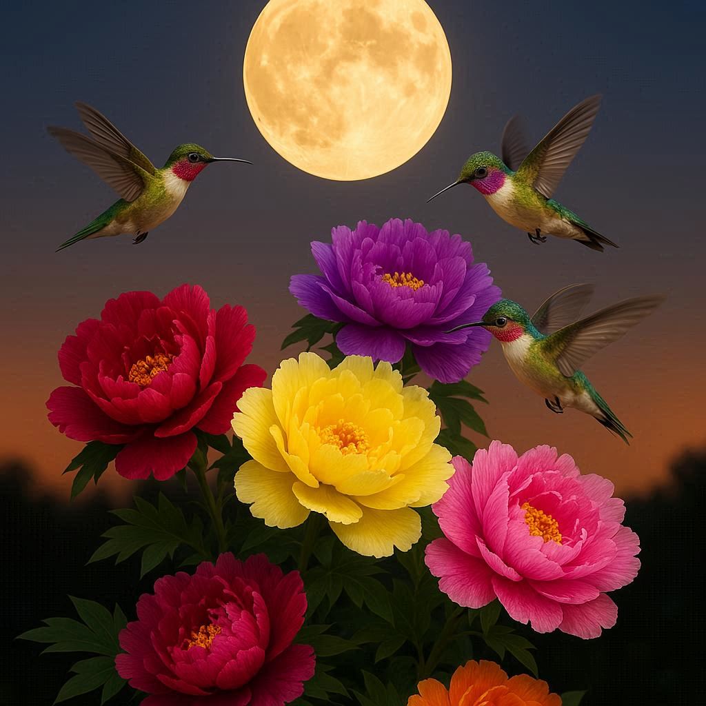 Hummingbirds welcome the rich flowers 蜂鳥喜迎富貴花