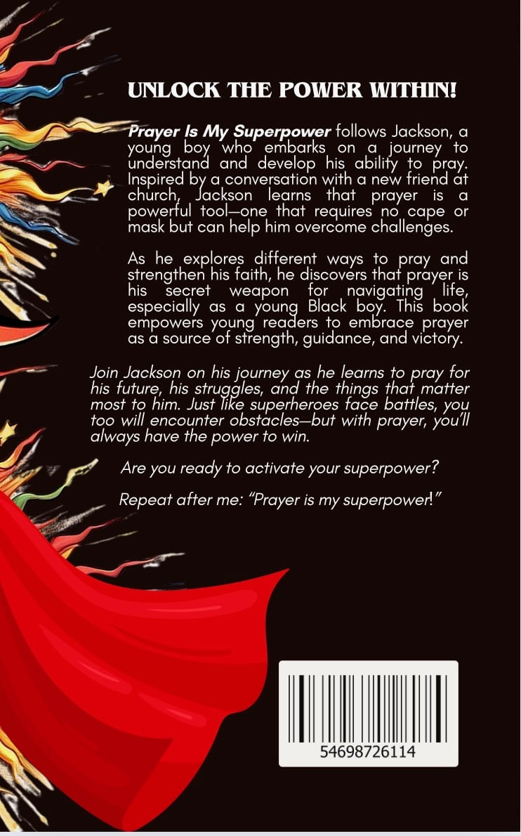 Join Jackson on his journey as he learns to pray for his future, his struggles, and the things that matter most to him. Just like superheroes face battles, you too will encounter obstacles-but with prayer, you'll always have the power to win.