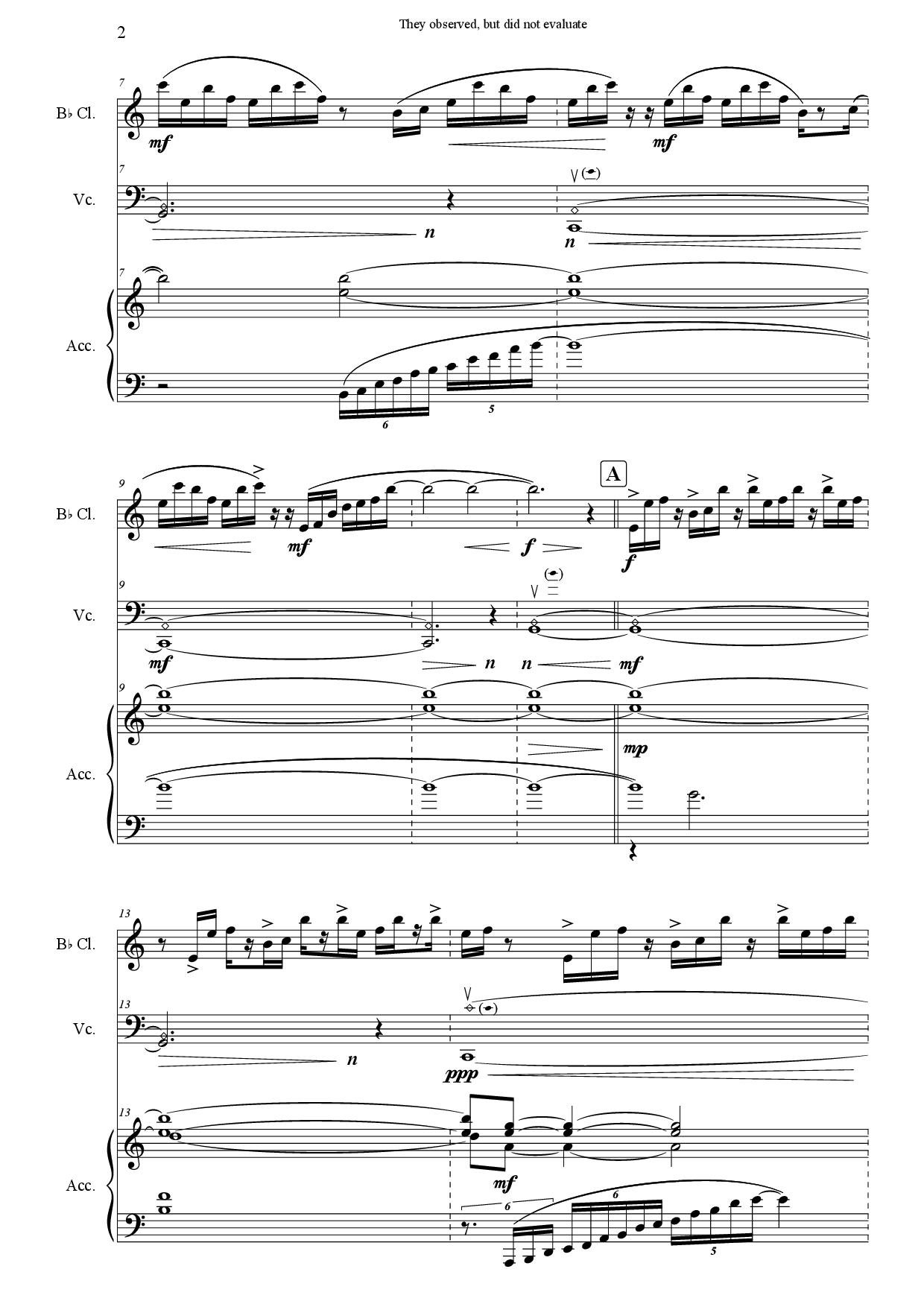 Peter Machajdík: THEY OBSERVED, BUT DID NOT EVALUATE for clarinet in Bb, cello and accordion (Digital Sheet Music) [score and parts]