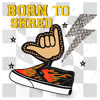 Get ready to skate in style with this Born to Shred design! Featuring bold yellow varsity text, a “Rad Little Dude” lightning bolt, checkered shaka hand, and fiery Vans slip-on shoe, this PNG is perfect for skate-inspired tees, hoodies, and more.