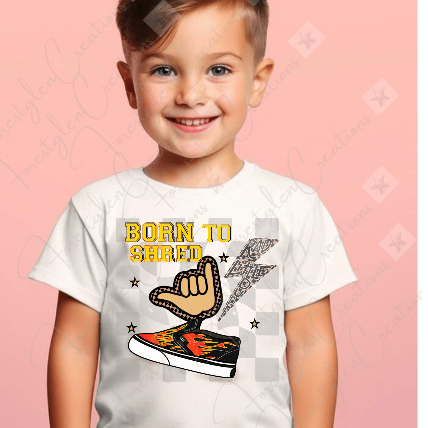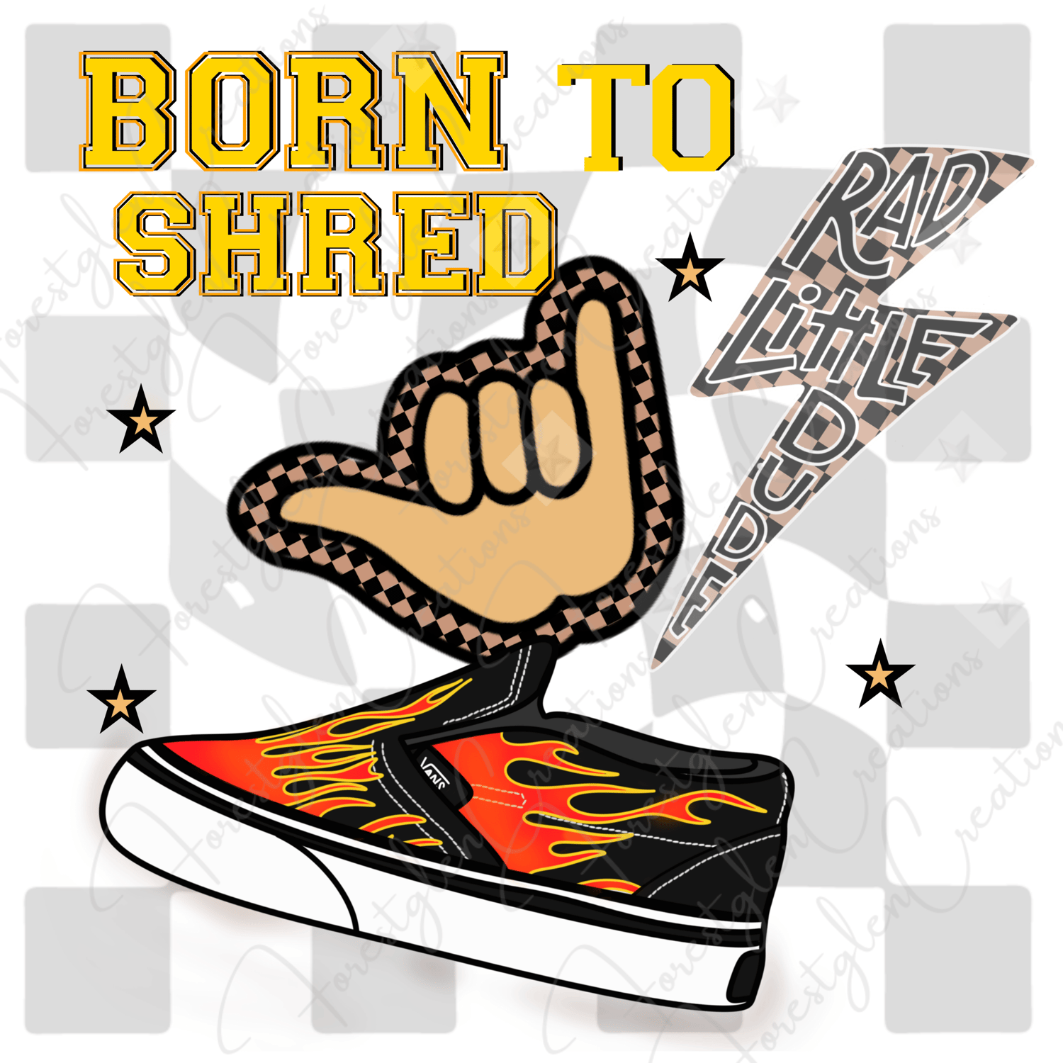 born to shred png, skateboarding png, rad little dude design, flames shoe png, boys skate shirt design, checkered shaka hand, cool kids sublimation, skater png design, lightning bolt png, vans flames shoe design