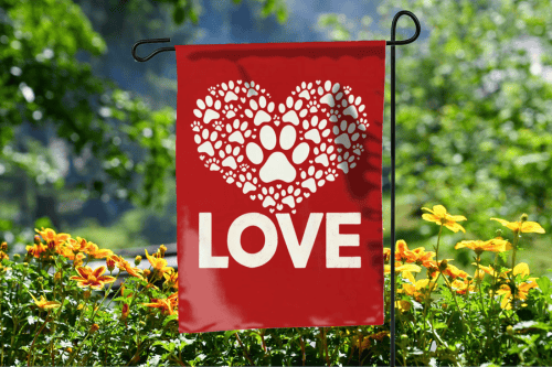 Dog Paw Love Garden Flag | Valentine's Day Design