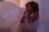 Marilia was eager to give b2p another shot. In a confined corner of her room this white balloon makes the best bang!