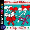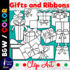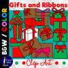 Includes 11 B&W gift boxes, 11 colored boxes, 4 B&W ribbons, and 4 colored ribbons.