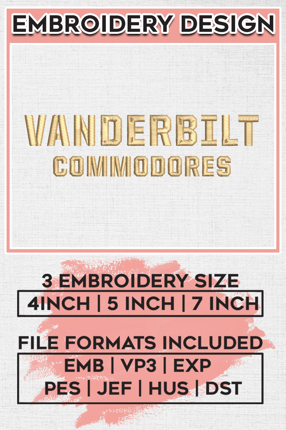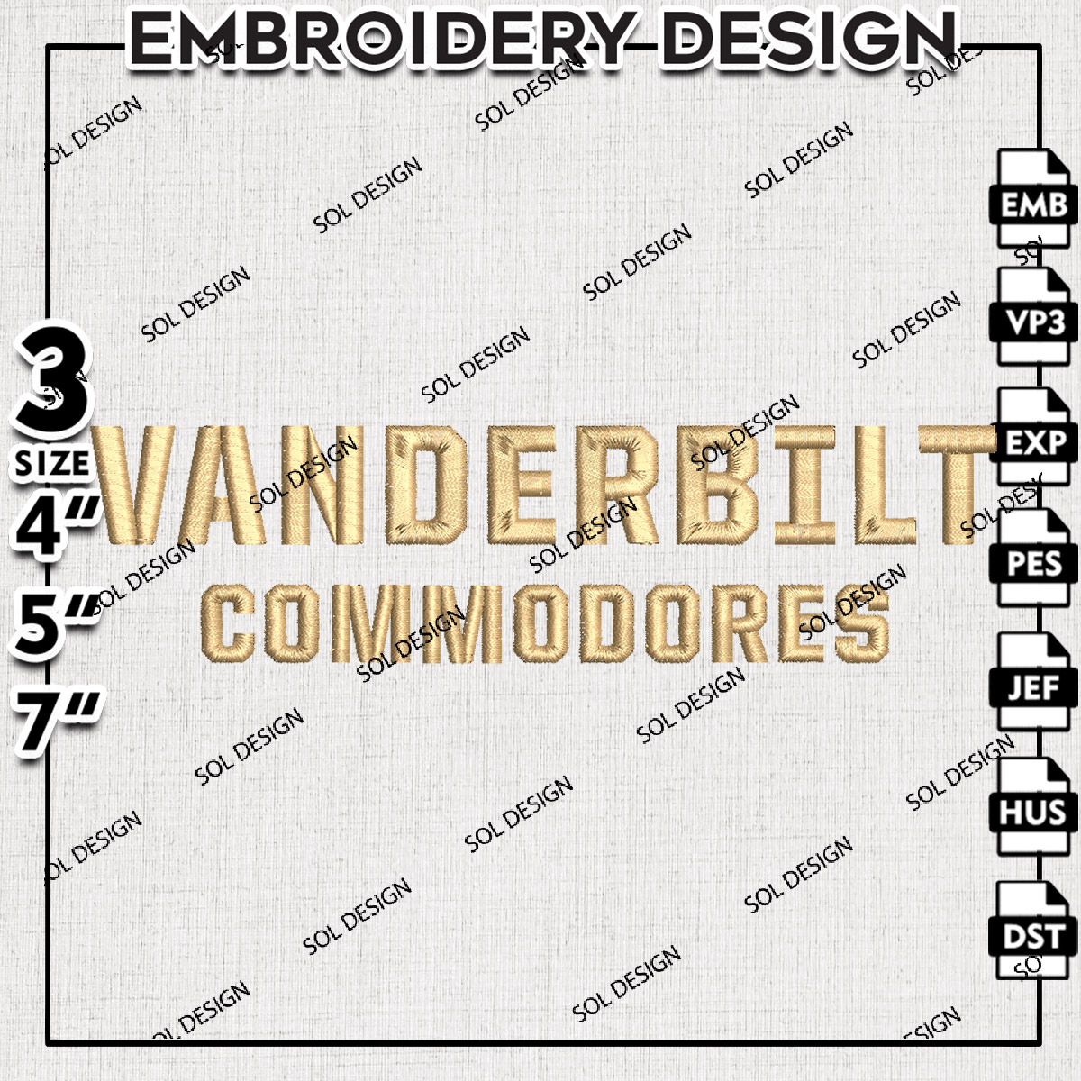 Vanderbilt Commodores College Football Team Wordmark Logo Embroidery Designs, NCAA Vanderbilt Commodores Machine Embroidery Files, NCAA Logo embroidery designs, NCAA Vanderbilt Logo, Digital Download