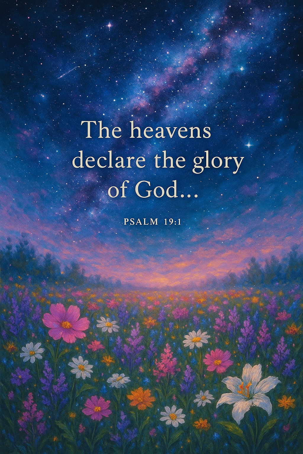 🌸🌌 Heavens Declare – Psalm 19:1 Scripture Art Print