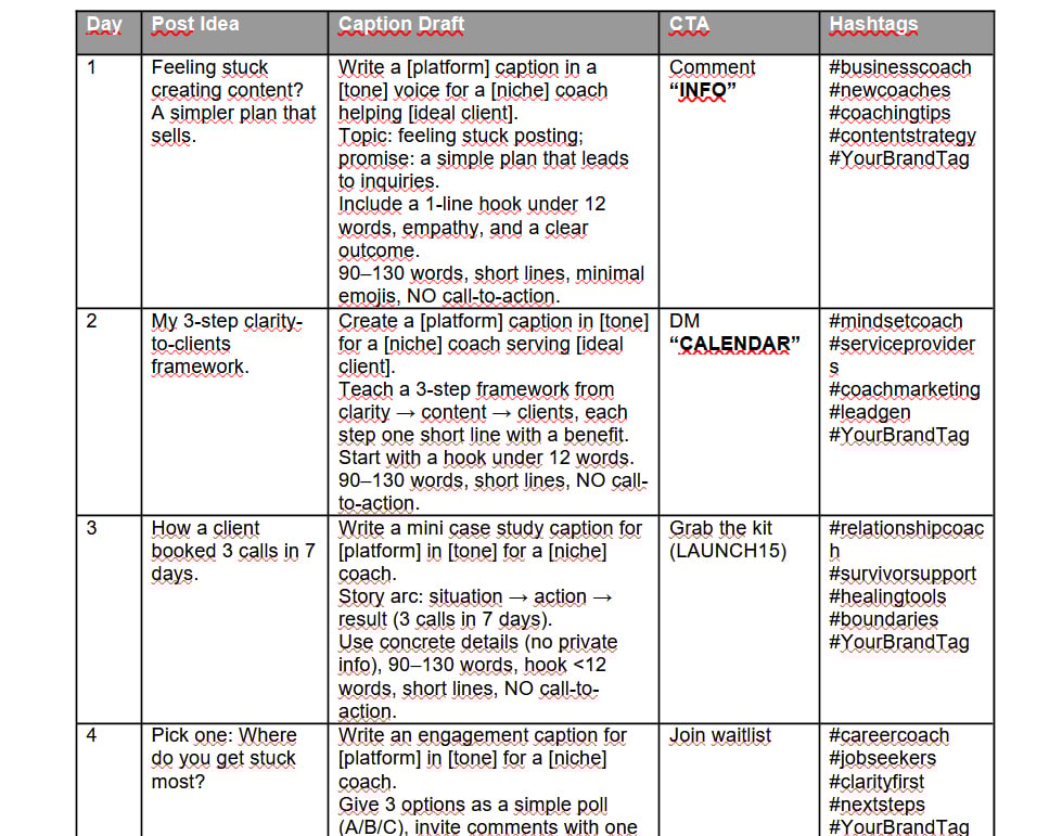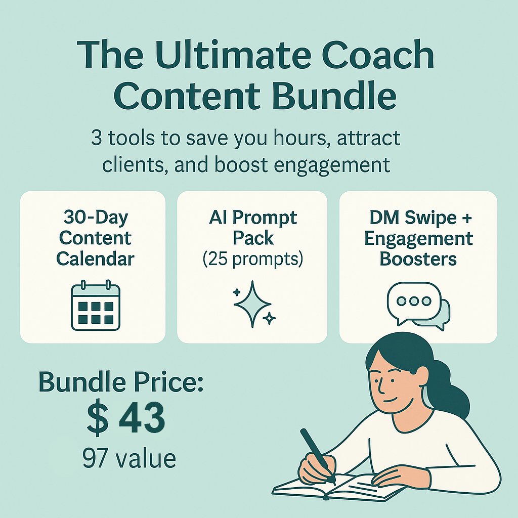 The Ultimate Coach Content Bundle (25 AI Prompts + 30-Day Content Calendar + Bonus Engagement Swipes)