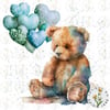 Watercolour Balloon Bear Blue, NO Text. PNG/Clipart
