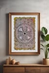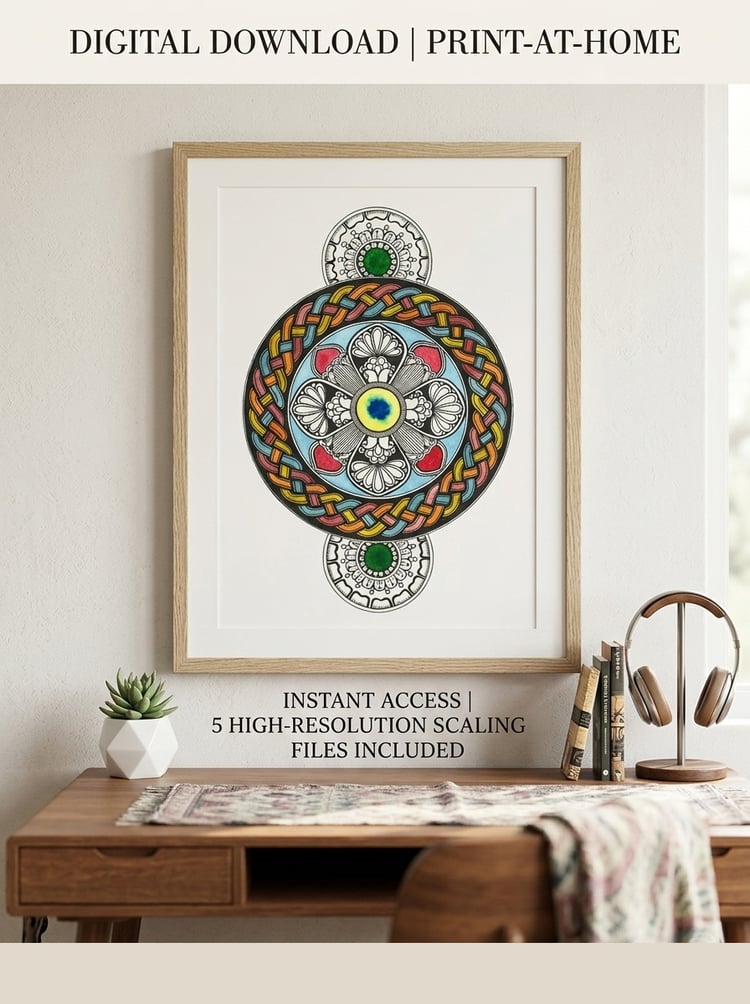 Each line is carefully illustrated by hand, making this artwork rich in detail and perfect for close viewing. Designed to feel both timeless and contemporary, it works beautifully as wall art, a journal cover, spiritual décor, or a creative design element.