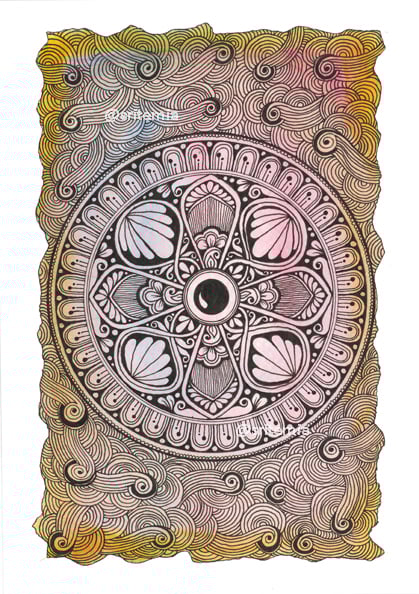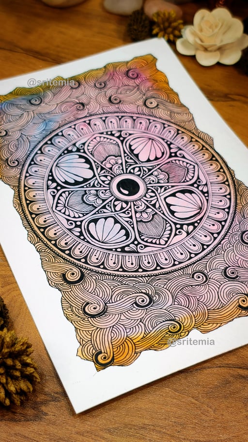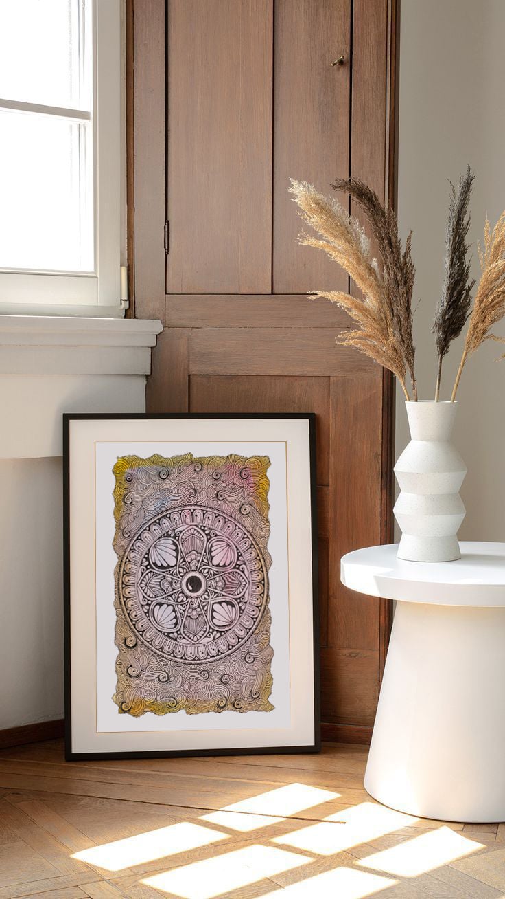 A hand-drawn Celestial Mandala featuring intricate ornamental details and soft, calming tones. Designed to evoke balance, harmony, and mindful stillness.