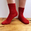 Hand knit socks are designed to be slightly smaller than the foot length to give a small amount of negative ease. This means that they will hug the foot and leg and stay in place. The sizes given are ‘to fit’ sizes. The actual socks will be slightly smaller to allow a little stretch for a snug fit.