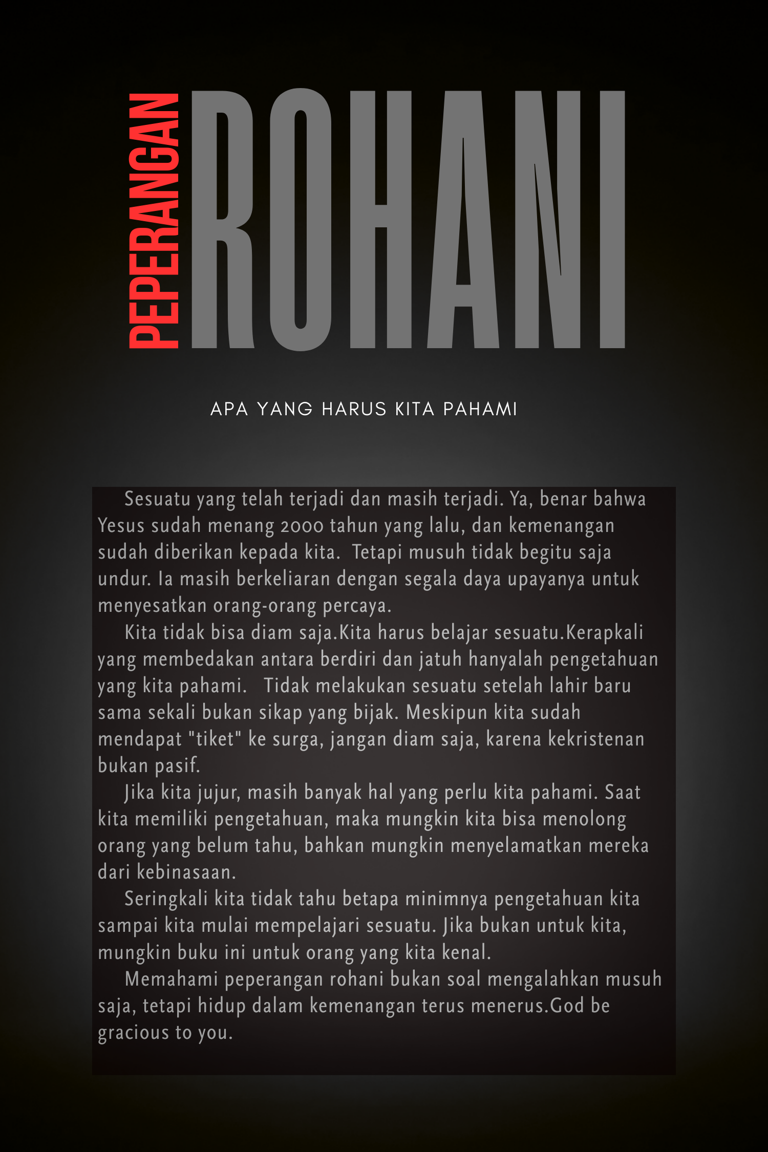 Memahami peperangan rohani bukan soal mengalahkan musuh saja, tetapi hidup dalam kemenangan terus menerus. God be gracious to you.