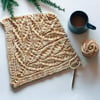 US 11 (8mm) needles or needle size to obtain gauge; scrap yarn or spare needle; tapestry needle.