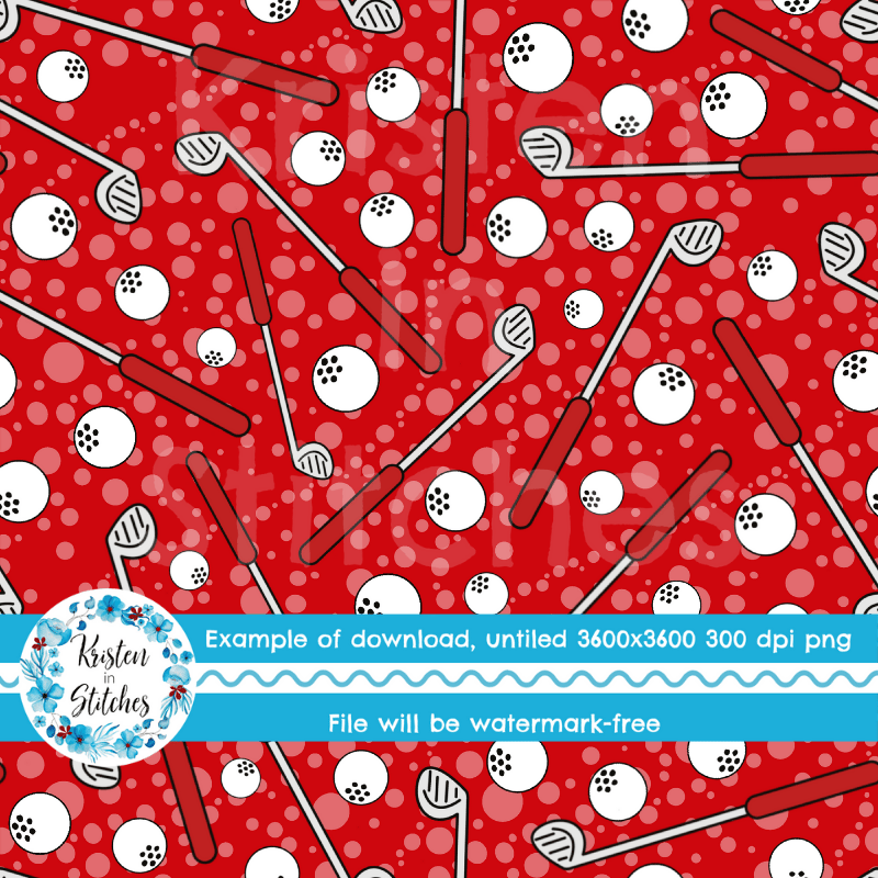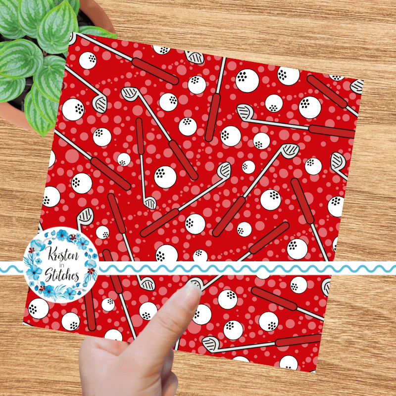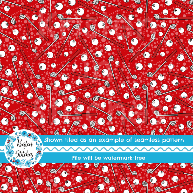 Golf Clubs and Balls Seamless Pattern, Red