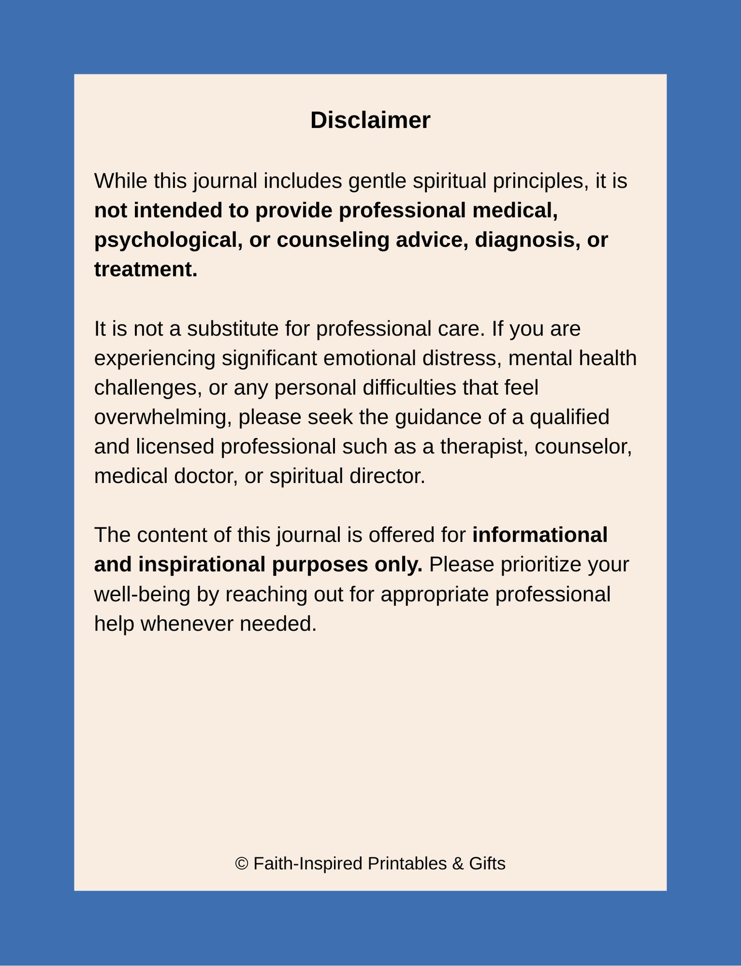 ⚠️ Disclaimer: This journal includes gentle spiritual encouragement but is not intended to replace professional medical, psychological, or counseling advice, diagnosis, or treatment. If you are experiencing significant emotional distress or mental health challenges, please seek support from a qualified professional.