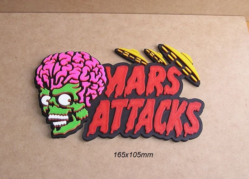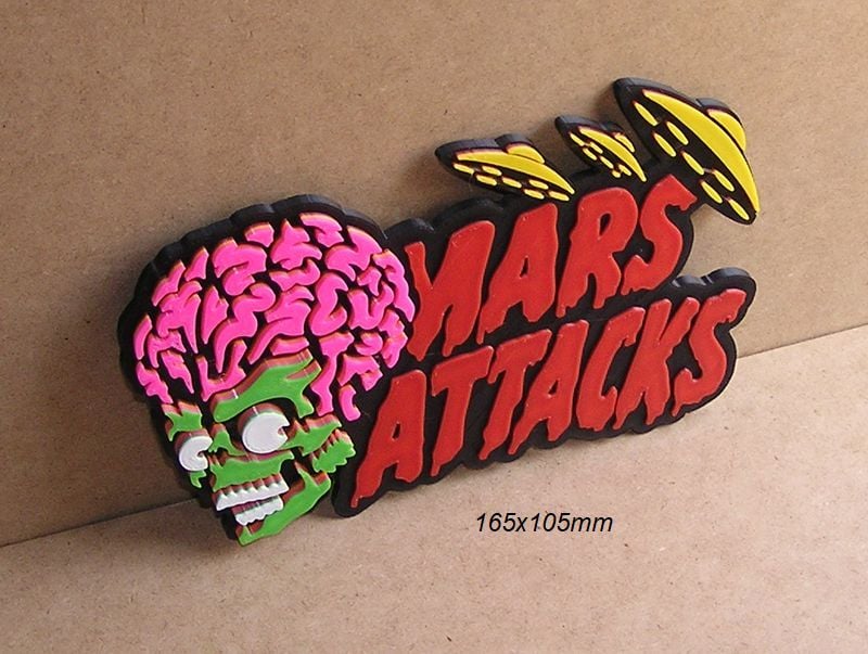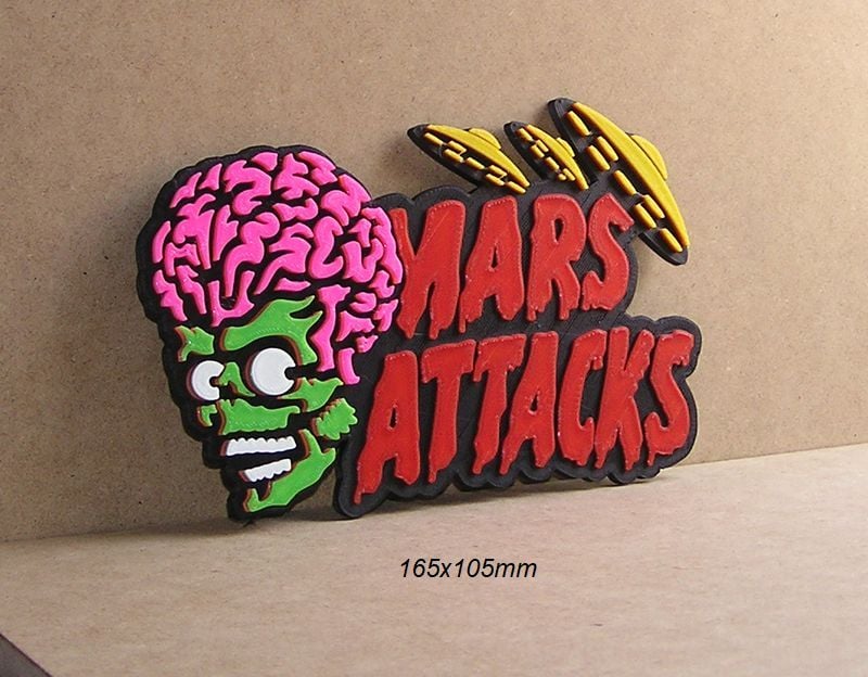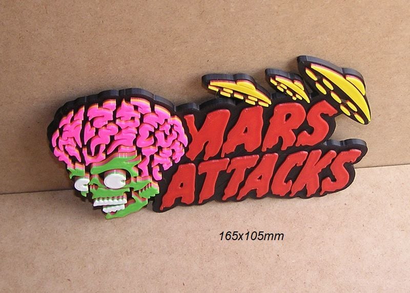 Mars Attacks Embossed logo poster for decoration and collection, Give your space a unique touch with our 3D-printed signs and logos. Inspired by movies, sports, music, and more, each piece is crafted with precision and detail. Explore our online store and find the perfect design for yourself or as a gift. Customization available!"