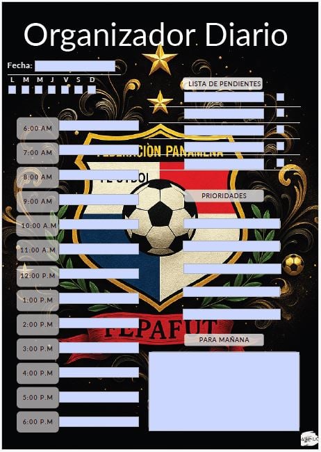 Organiza tu día con orgullo panameño gracias a este planificador diario en formato digital (PDF) inspirado en la pasión de la selección nacional de fútbol de Panamá.