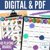 Your students will be engaged with this fun lotería game as they learn to identify music items in Spanish. These 3 sets of 40 unique playing boards will provide each student with their own set of la música vocabulary words to review. This lotería game is digital on Google Slides and printable. This set also includes cue cards for the teacher to make playing a breeze! This BINGO game set includes 3 different games: a word board, a word + pictures board, and pictures only board to vary how you play!