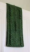 The long sides have i-cord edges that are knit simultaneously with the cowl body.