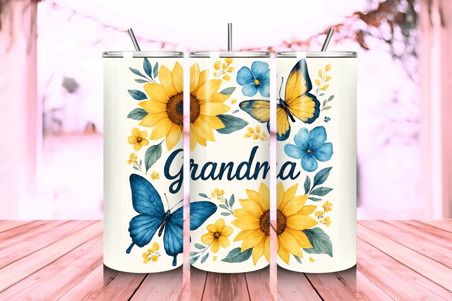 Grandma Tumbler Wrap PNG – 20oz Skinny Sublimation Design with Watercolor Flowers & Butterflies – Perfect Gift for Grandmothers – 300 DPI Instant Digital Download