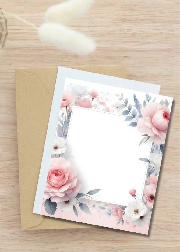 This versatile printable card is perfect for any occasion! Whether you're sending a birthday wish, a thank you note, a sympathy message, or just a thoughtful hello, this elegant design offers the perfect canvas. Simply download, print at home or your local print shop, and handwrite or digitally add your unique message.