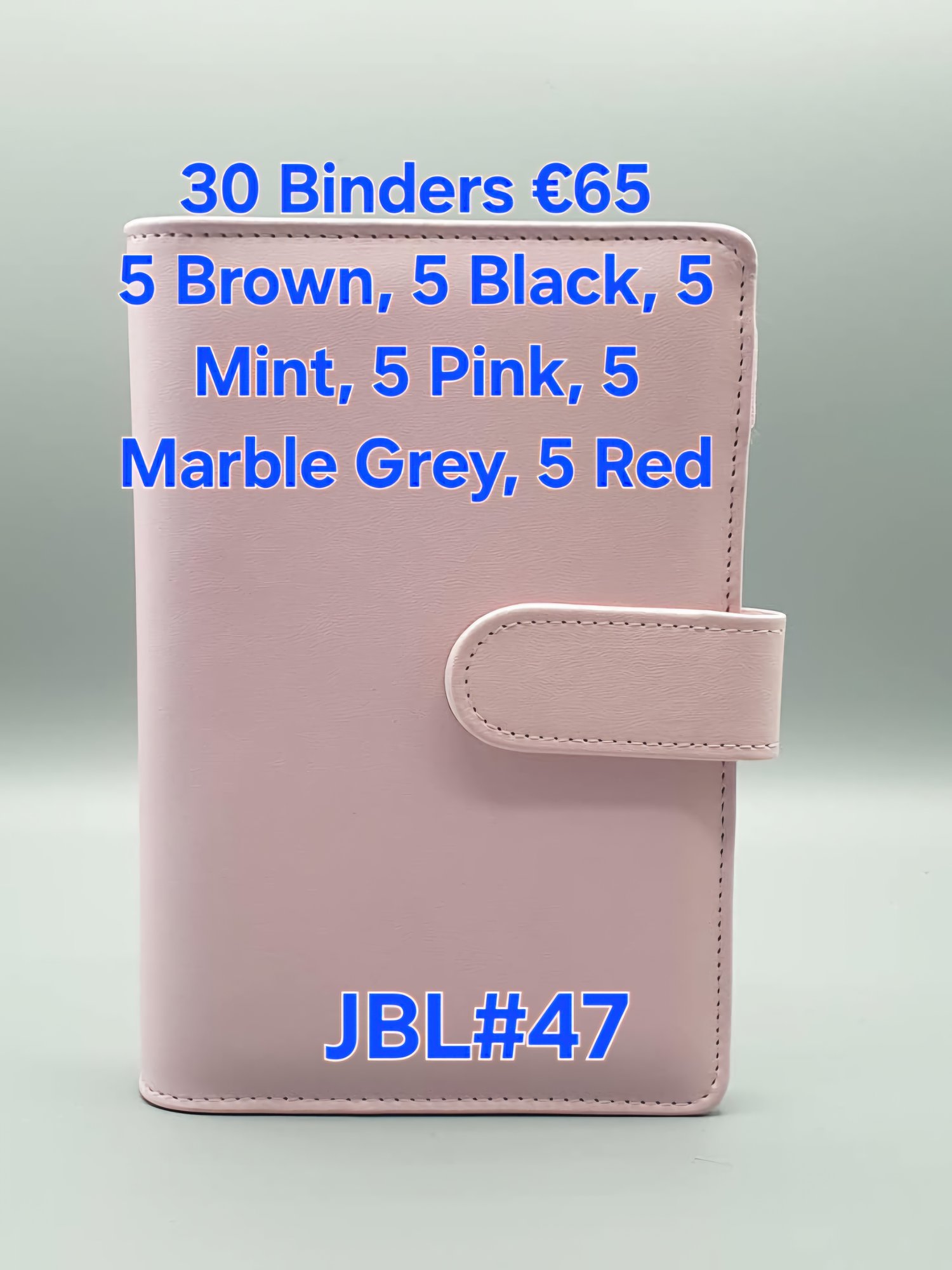 5 brown, 5 black, 5 mint, 5 pink, 5 red, 5 marble grey
