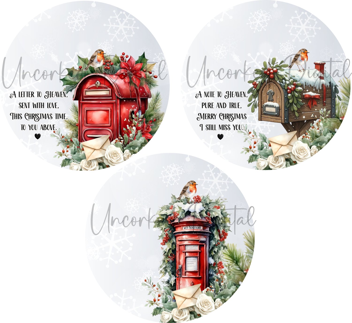3 postbox resizable memorial rounds to fit various circular blanks, these come with 2 sets of text as separate text for you to place on before printing or to add you own personalisation/text.
