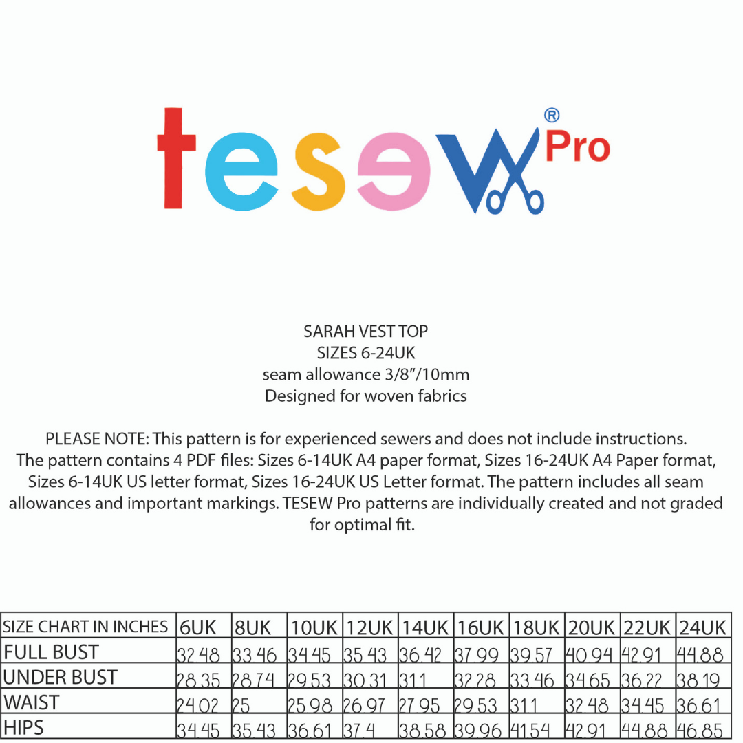 - TESEW Pro patterns are individually created and not graded for optimal fit.