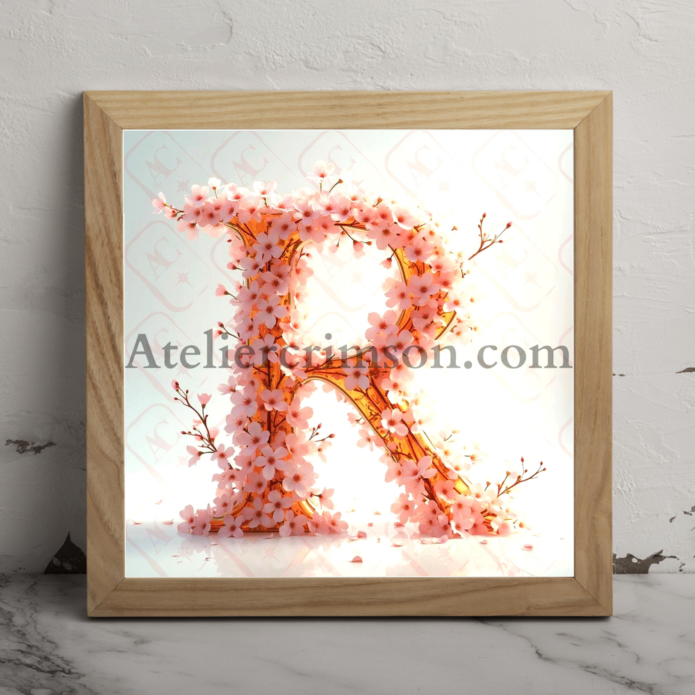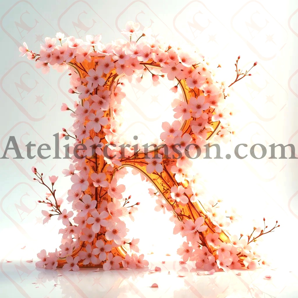 The letter R zen cherry blossom Download Now this high quality AI-generated image, perfect for adding a touch of tranquility and creativity to any space.