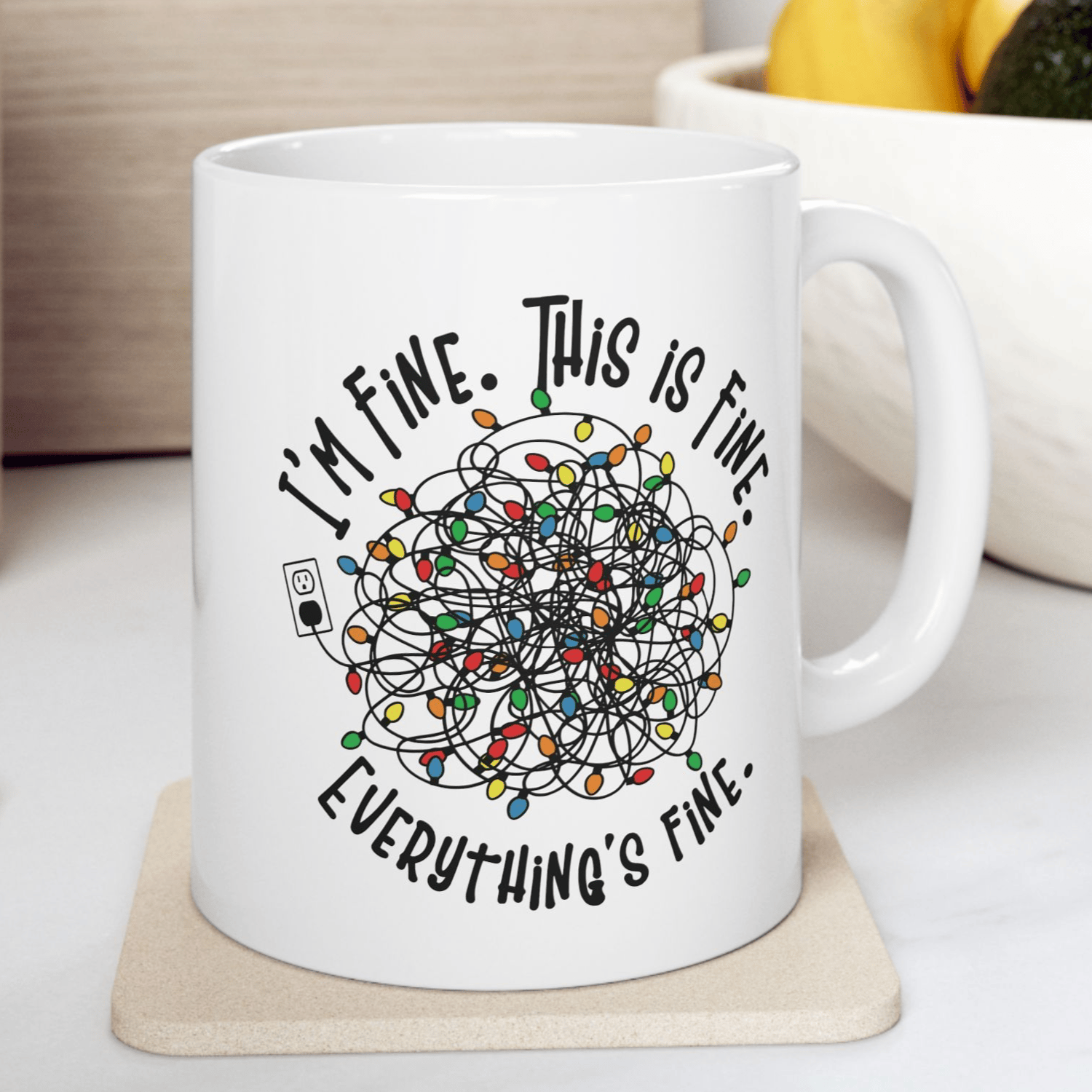 I'm Fine This Is Fine Everything's Fine Christmas Lights Funny Sarcastic Coffee Mug