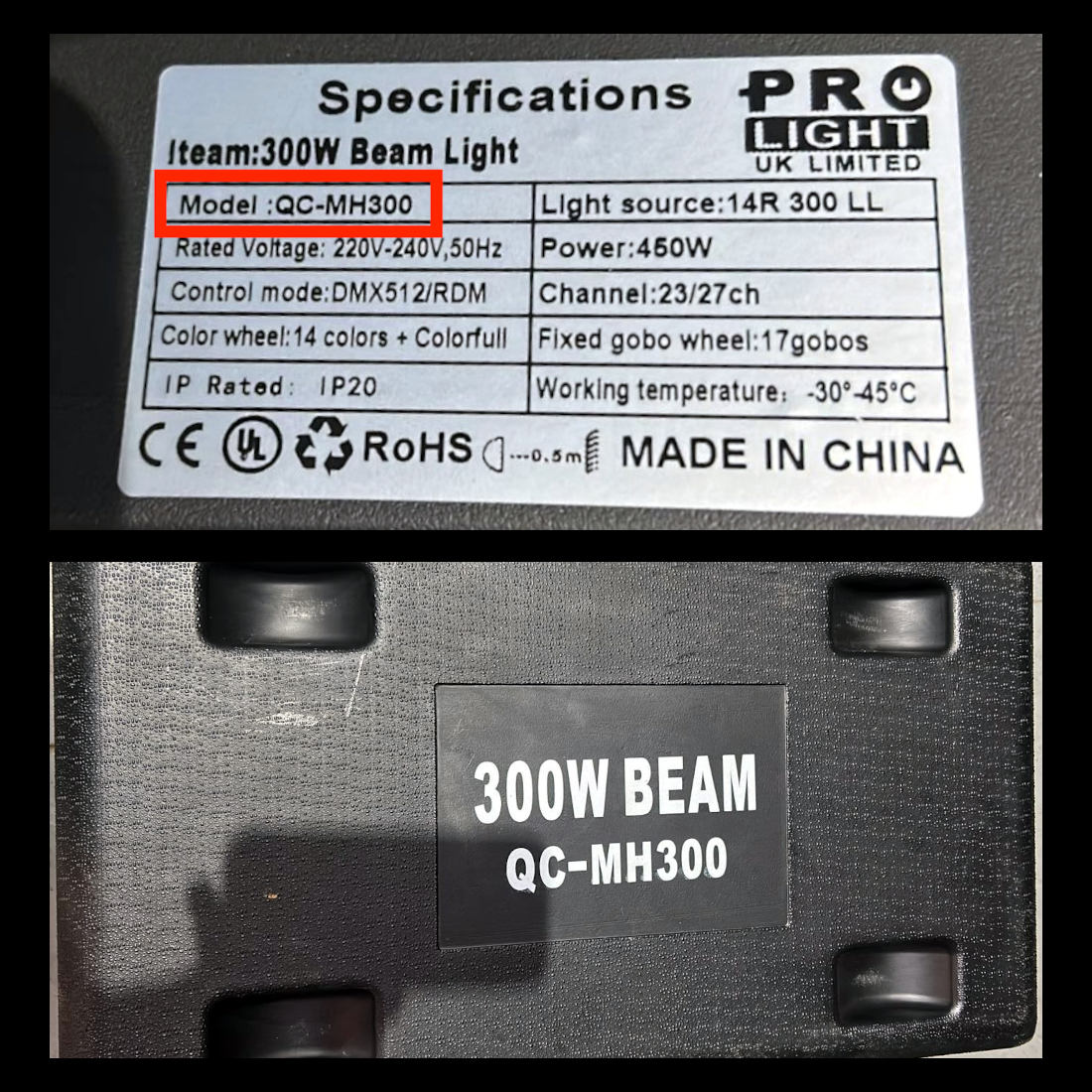 Fixture de Freestyler P/ QC-MH300 de Pro Light Brasil ( 23-27CH Beam 300 14R con Aro Led )
