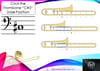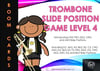 The Trombone Slide Position Game - Level 4 is a great way for your students to quickly learn and reinforce note recognition in connection with trombone slide positions. Level 4 introduces the first 20 trombone notes, G2, Ab2, A2, Bb2, B2, C3, C#3, Db3, D3, Eb3, E3, F3, F#3, Gb3, G3, G#3, Ab3, A#3, A3 and Bb3. Slide Positions. I found this interactive game to be extremely helpful when my in-class time with my students was reduced due to various school functions. As a result, there were fewer fingering errors and performance grades improved.