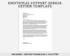 Emotional Support Animal Letter Template, ESA Letter Template, ESA Letter, Service Animal, Doctor Template, Therapist Letter, Treatment Plan