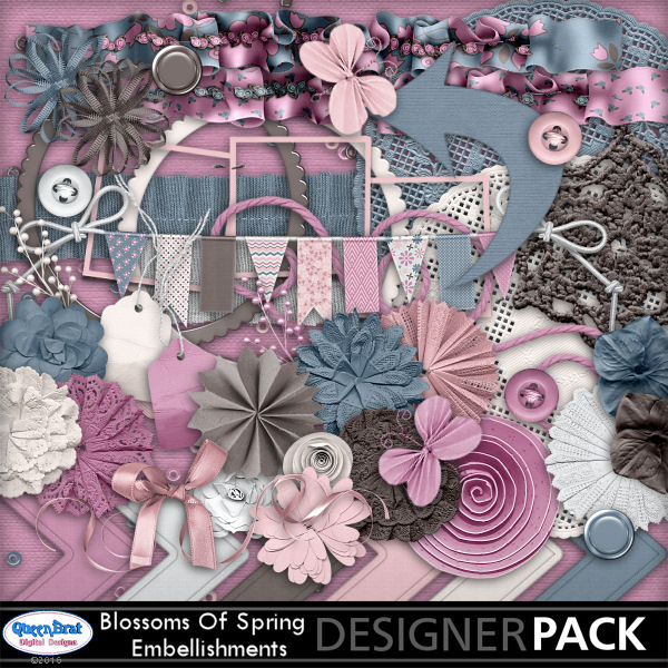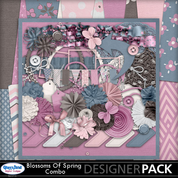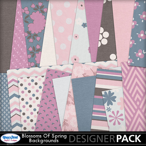 The flowers of Spring are blooming in this paper texture kit. This is a great kit for Spring, feminine, or Mother's Day projects. Combo includes Backgrounds and Embellishments.