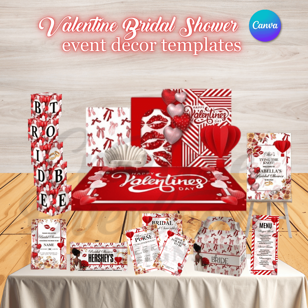 Celebrate love in full color with this Valentine’s Bridal Shower Editable Canva Template Set. Designed for brides who adore a romantic aesthetic and hosts who want a beautiful event without the chaos, this bundle brings a coordinated look from invitation to dessert table. Everything feels cohesive, intentional, and effortlessly glamorous.