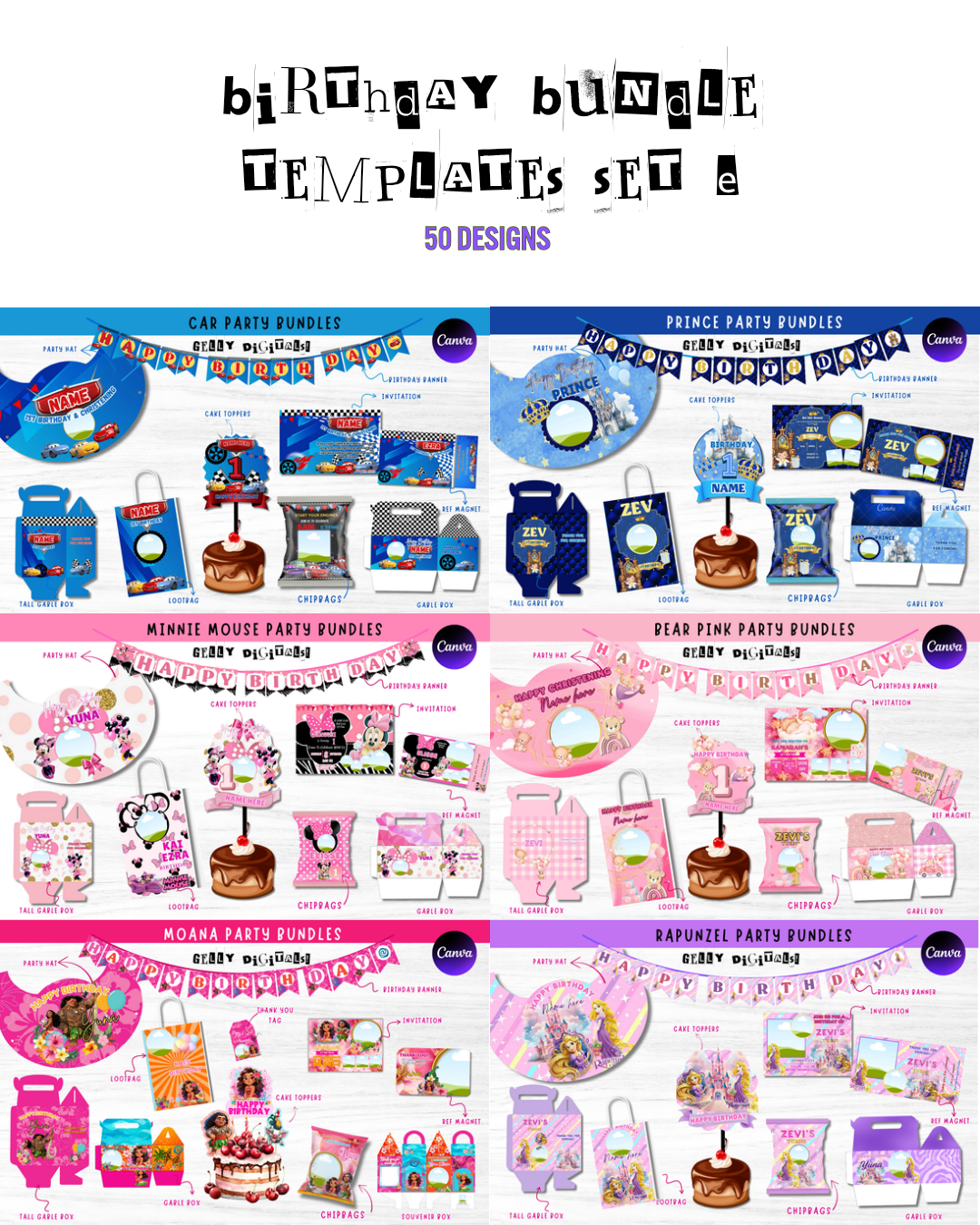 β¨ Grab our Birthday Bundle Set E β packed with everything you need to make your celebration unforgettable! From custom chip bags to adorable thank-you tags, itβs all here in one easy download.