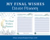 No one wants to think about dying, but it will happen. Your loved ones are left in a very difficult spot trying to decide what your "final wishes" would be. With this "My Final Wishes" Estate Planner, you will be able to give your loved ones the peace of mind that they are doing exactly what you wanted. They will also be able to find your insurance and other important information.