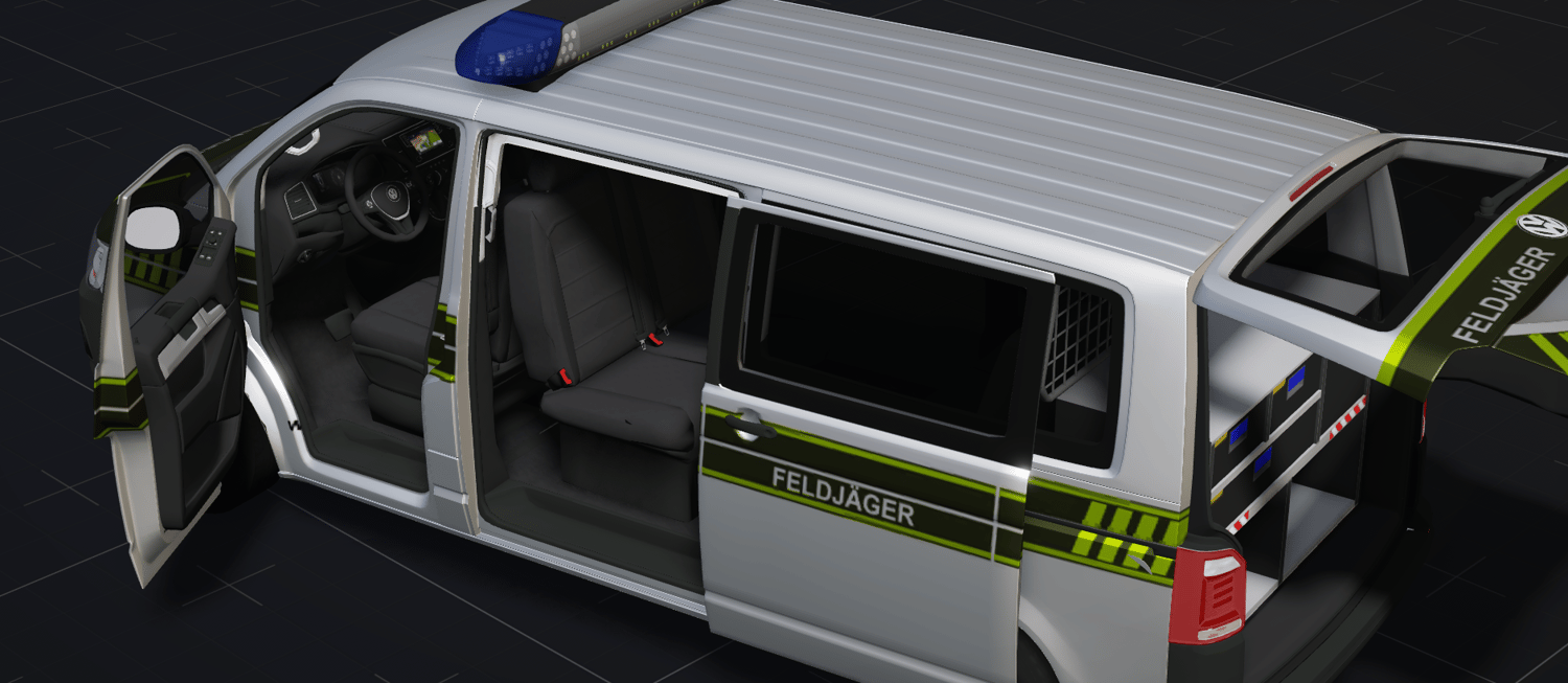 The Volkswagen T6, when used by the Feldjäger, or German Military Police, is a versatile and reliable light transport vehicle. These vans are customized with special equipment and livery to perform a range of duties from personnel transport to escort and patrol missions.