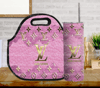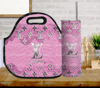 Pink and Gold and Pink and Silver Denim and Leather VL 20oz Tumbler and Lunch Tote PNG Design Bundle